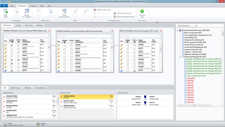 Com o Query, você pode definir consultas contra sistemas SAP com base em tabelas únicas, tabelas juntas, infosets ou bancos de dados lógicos. Os usuários podem facilmente identificar estruturas de dados com base em Tcodes ou módulos funcionais, e identificar campos, tabelas e relações entre tabelas e campos com base em características comuns.